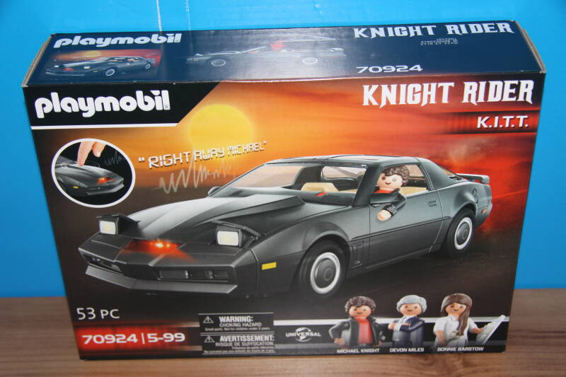 Eén van de vele (oud)televisieseries waar Playmobil een licentie van heeft gekocht: Knight Rider. In een wereld waarin Michael Knight, samen met zijn pratende auto K.I.T.T., probeert het recht te laten zegevieren. Ook deze serie maakte in de jaren '80 en '90 furore op televisie.