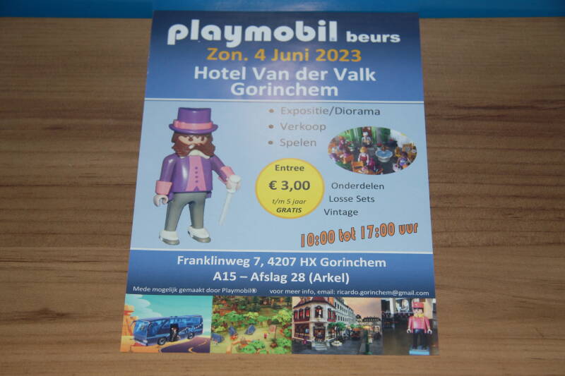 Omdat Playmobil al in 1974 op de markt kwam, is er behoorlijk wat reclame voor gemaakt in al die jaren. Advertenties in kranten, tijdschriften, winkels en dergelijke, maar ook reclamemateriaal in de vorm van spandoeken, posters, banners en meer. Een klein gedeelte van dit soort items heb ik kunnen bemachtigen en staat hieronder afgebeeld. Ook folders voor tentoonstellingen staan er tussen.