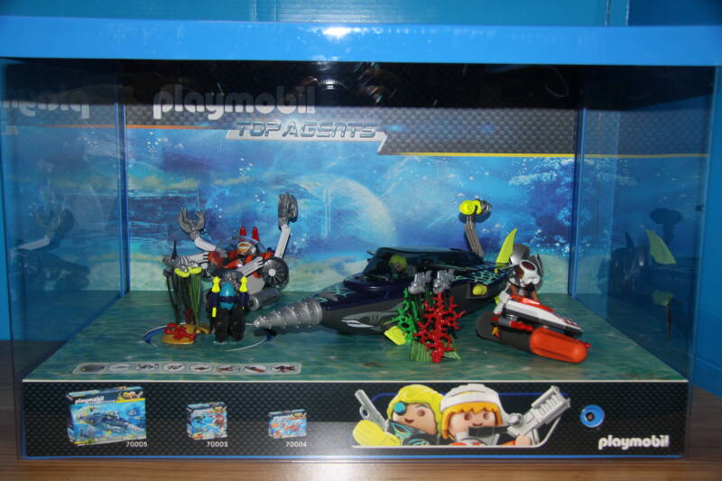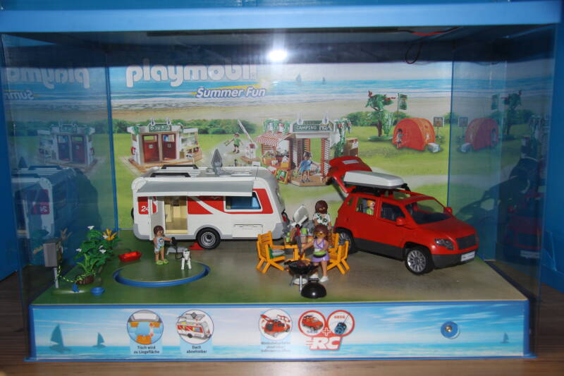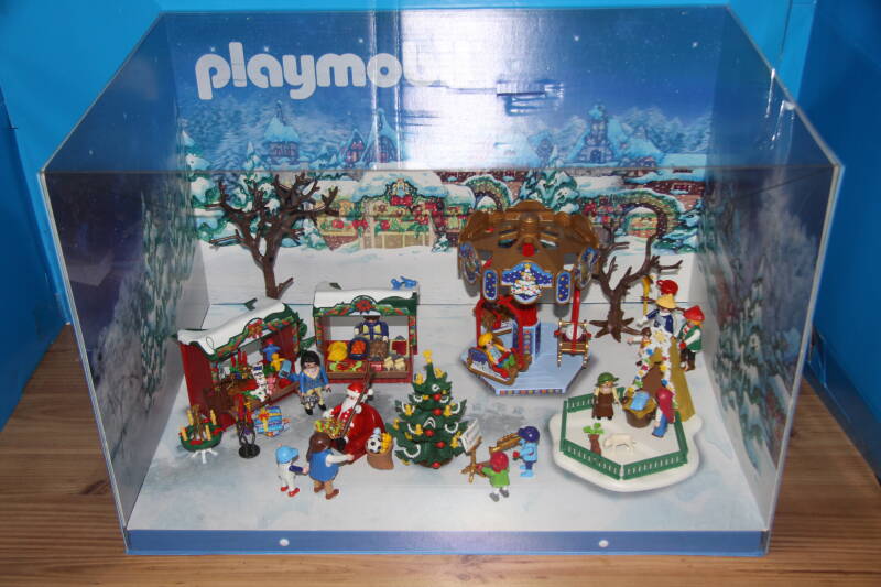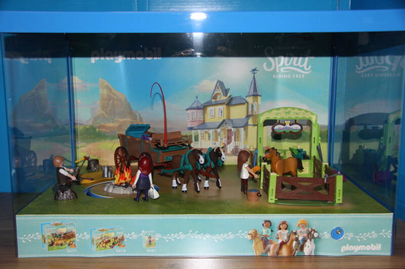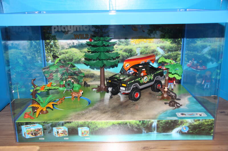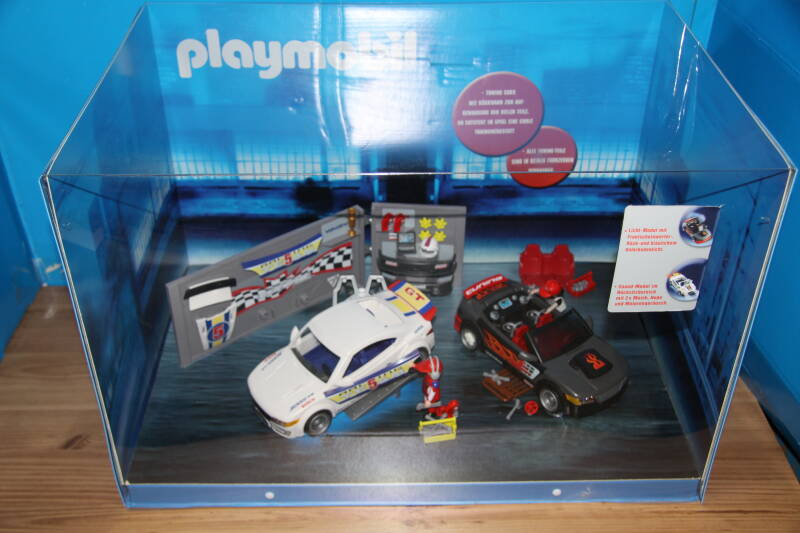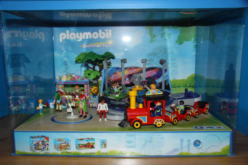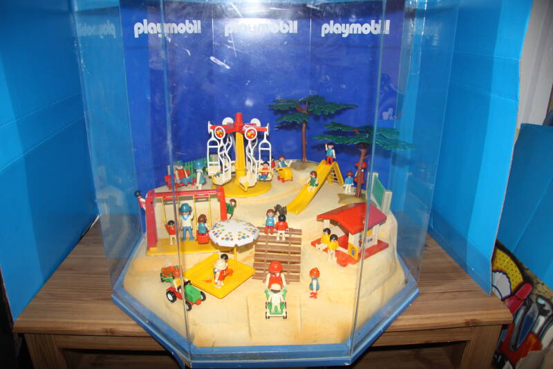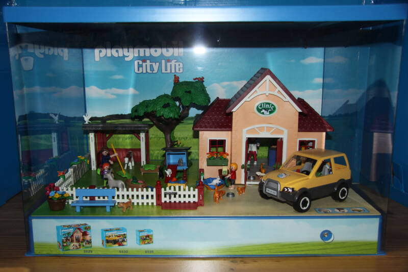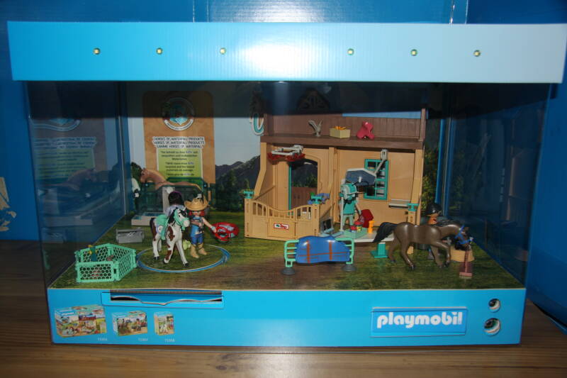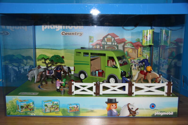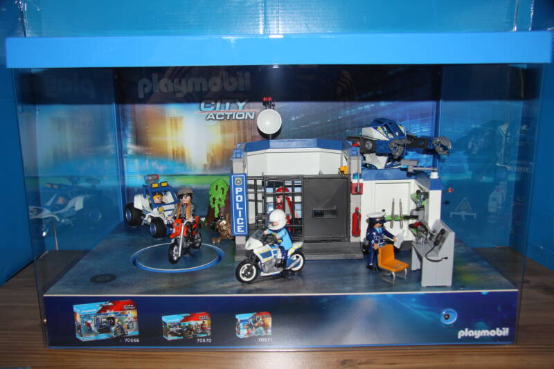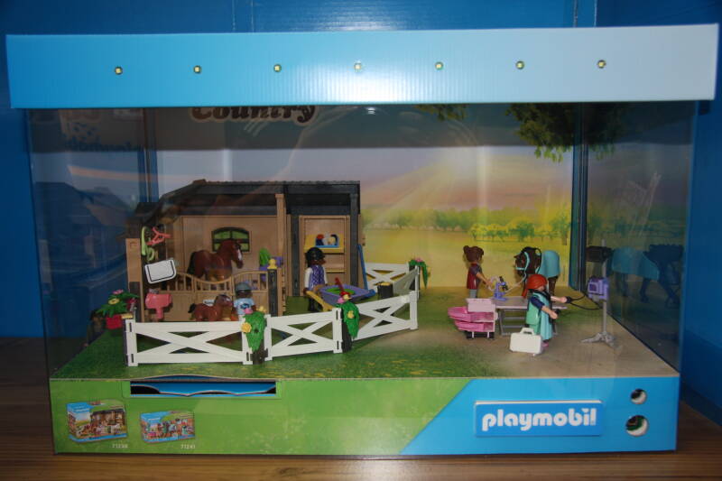 Ter bevordering van de verkoop zet Playmobil al sinds jaar en dag displays in de (grotere) winkels. Deze mini-diorama's zijn uitstallingen van de nieuwe serie(s) die zijn uitgebracht en beelden een tafereel uit die de fantasie van de kopers moet prikkelen. Het Playmobil in deze displays staat vastgelijmd en is ook niet bedoeld om mee te spelen, sterker nog: het is de bedoeling dat deze displays na afloop van de verkoopperiode weer geretourneerd worden naar de fabriek.