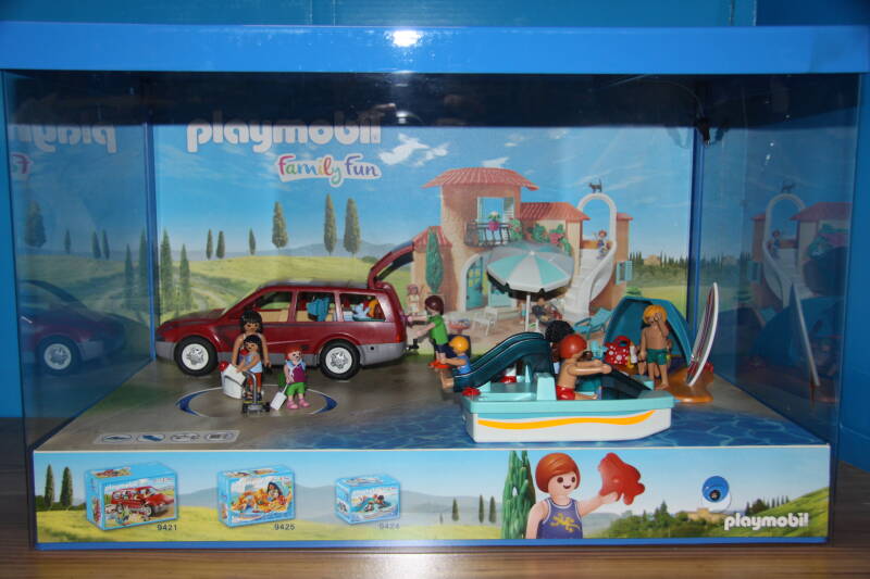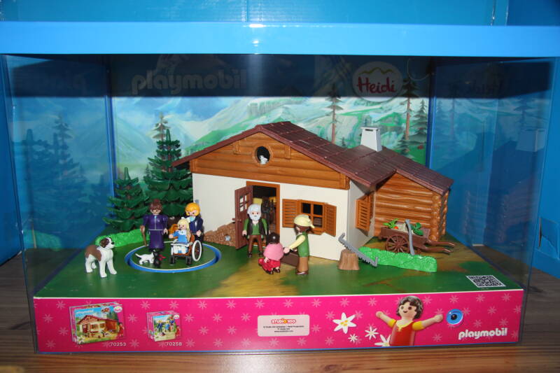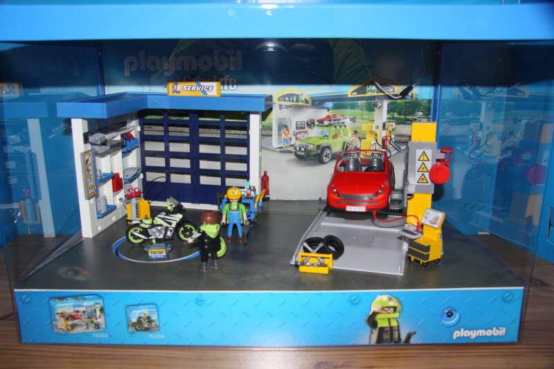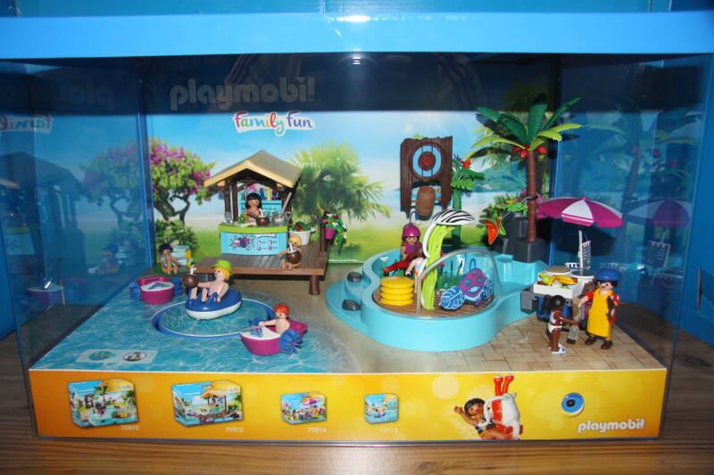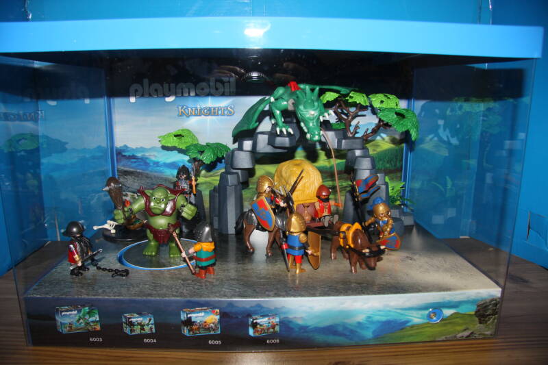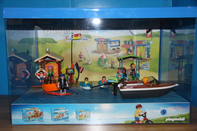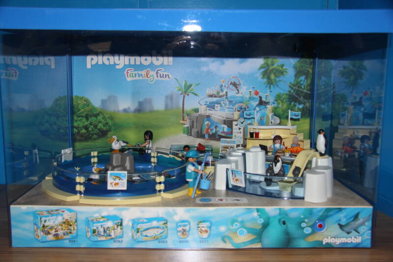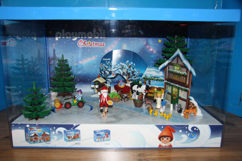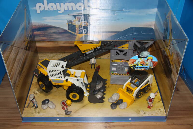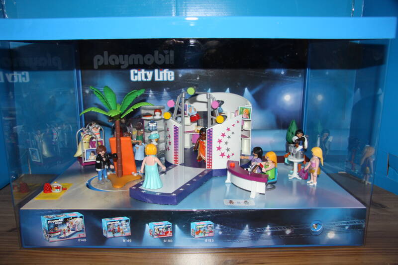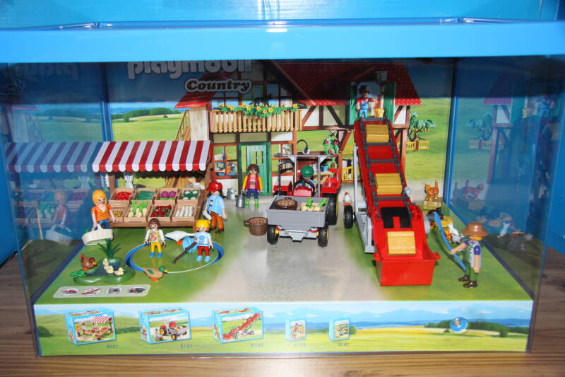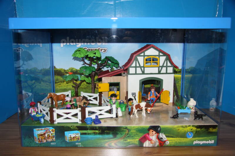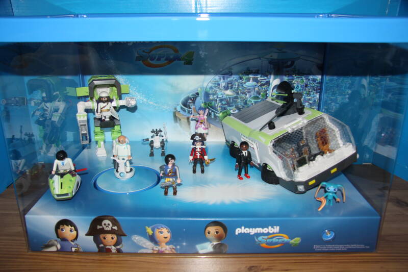 Ter bevordering van de verkoop zet Playmobil al sinds jaar en dag displays in de (grotere) winkels. Deze mini-diorama's zijn uitstallingen van de nieuwe serie(s) die zijn uitgebracht en beelden een tafereel uit die de fantasie van de kopers moet prikkelen. Het Playmobil in deze displays staat vastgelijmd en is ook niet bedoeld om mee te spelen, sterker nog: het is de bedoeling dat deze displays na afloop van de verkoopperiode weer geretourneerd worden naar de fabriek.