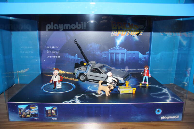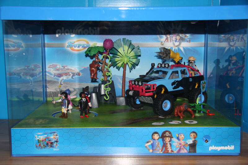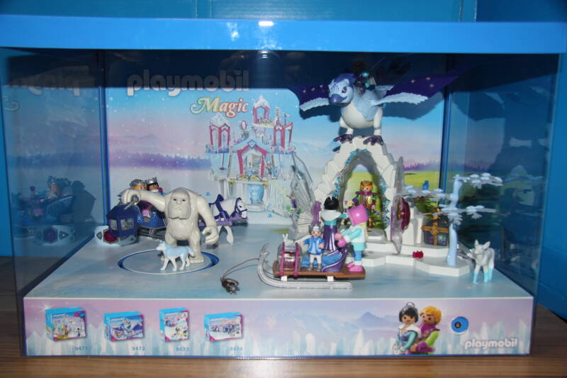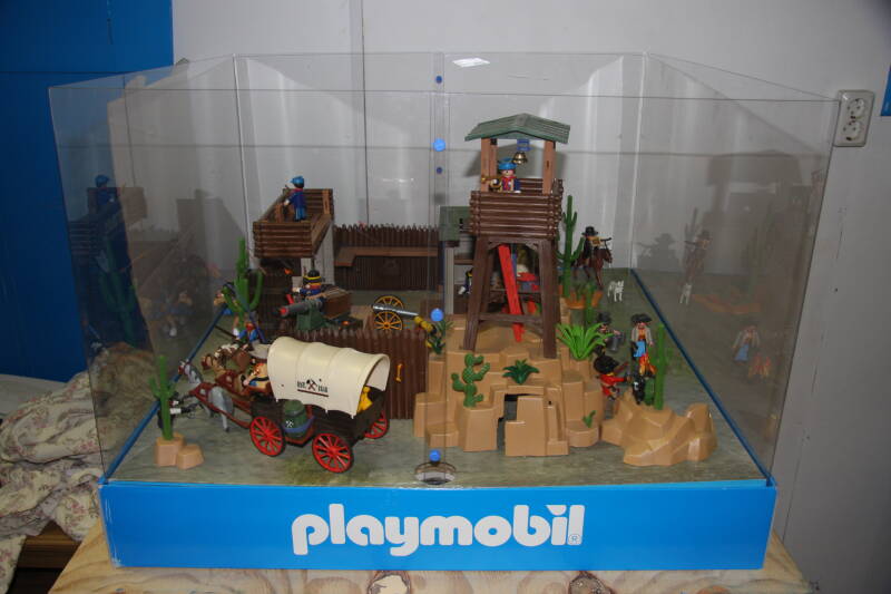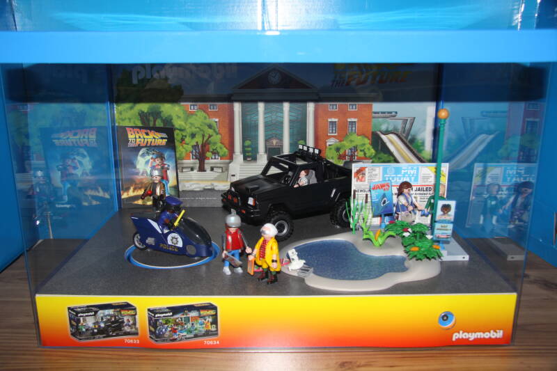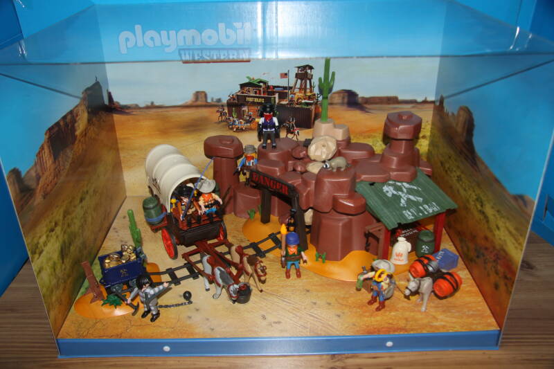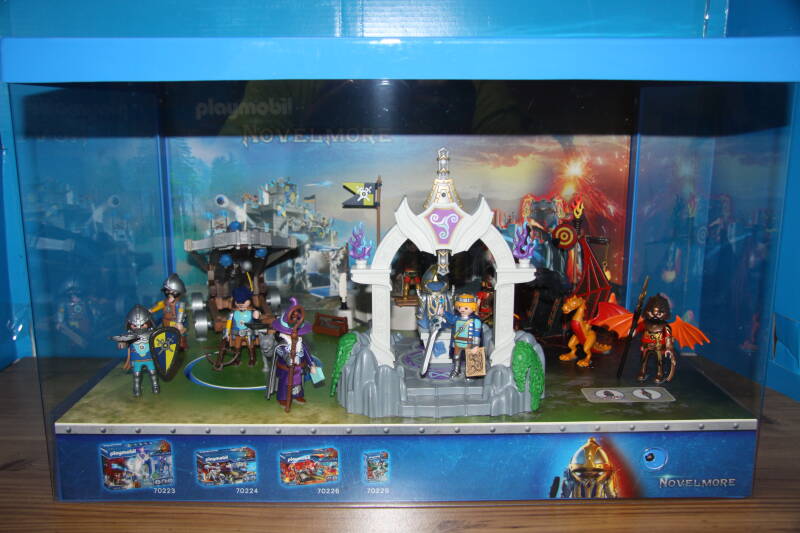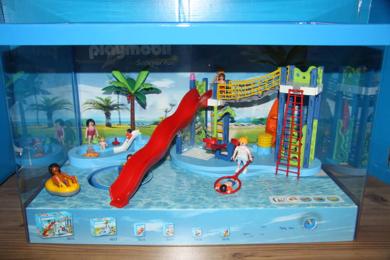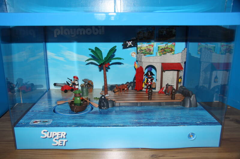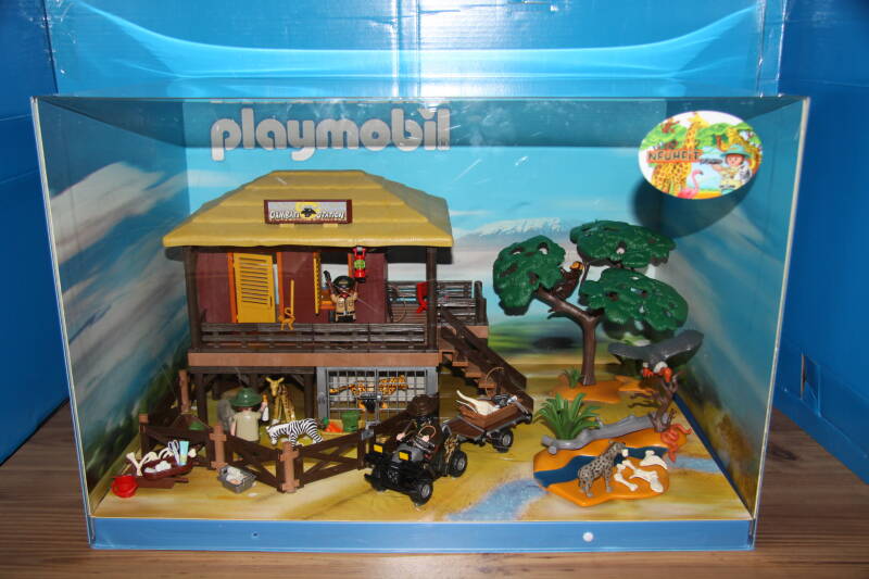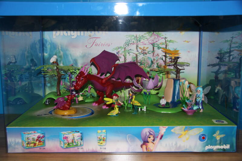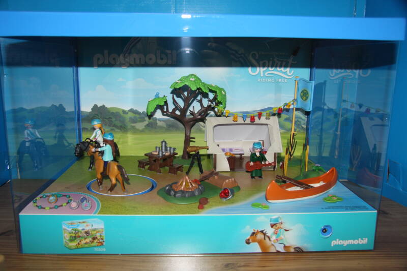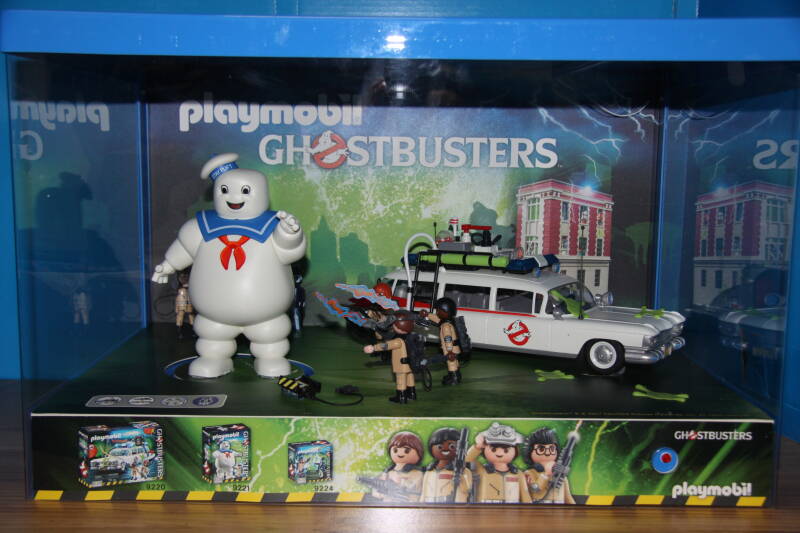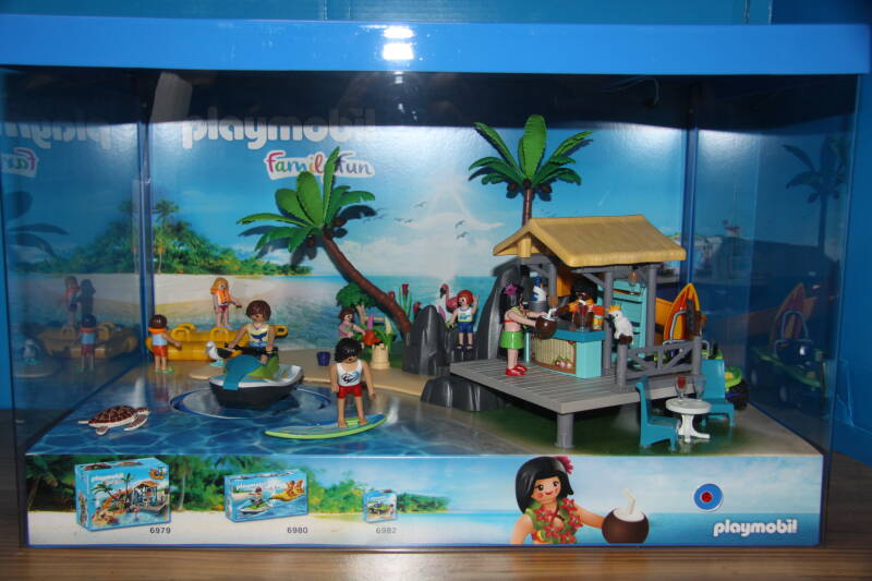 Ter bevordering van de verkoop zet Playmobil al sinds jaar en dag displays in de (grotere) winkels. Deze mini-diorama's zijn uitstallingen van de nieuwe serie(s) die zijn uitgebracht en beelden een tafereel uit die de fantasie van de kopers moet prikkelen. Het Playmobil in deze displays staat vastgelijmd en is ook niet bedoeld om mee te spelen, sterker nog: het is de bedoeling dat deze displays na afloop van de verkoopperiode weer geretourneerd worden naar de fabriek.