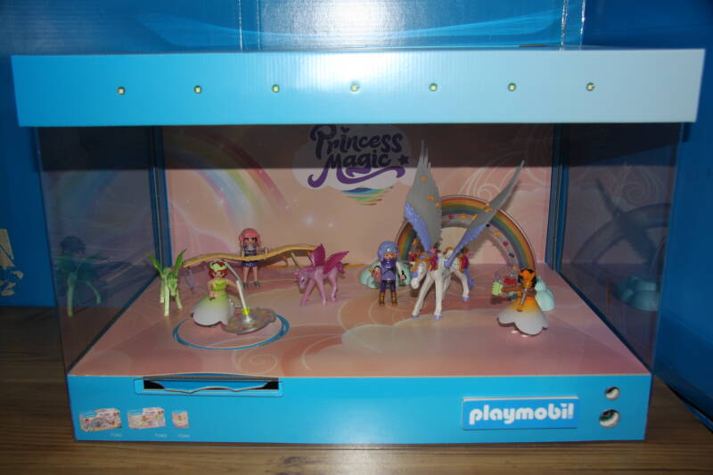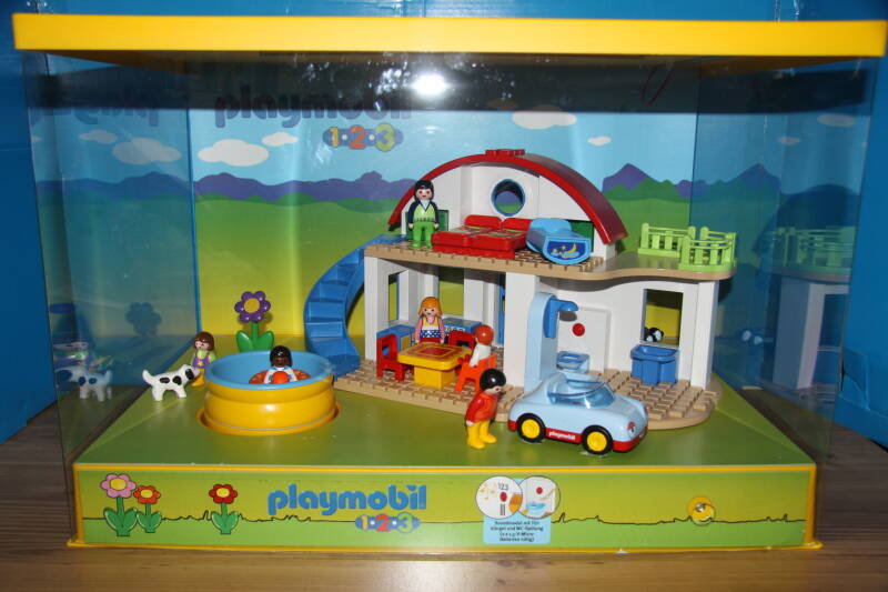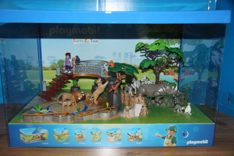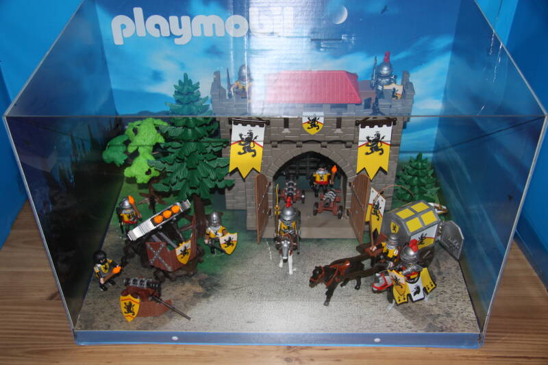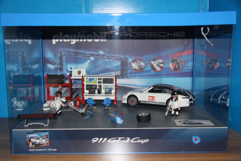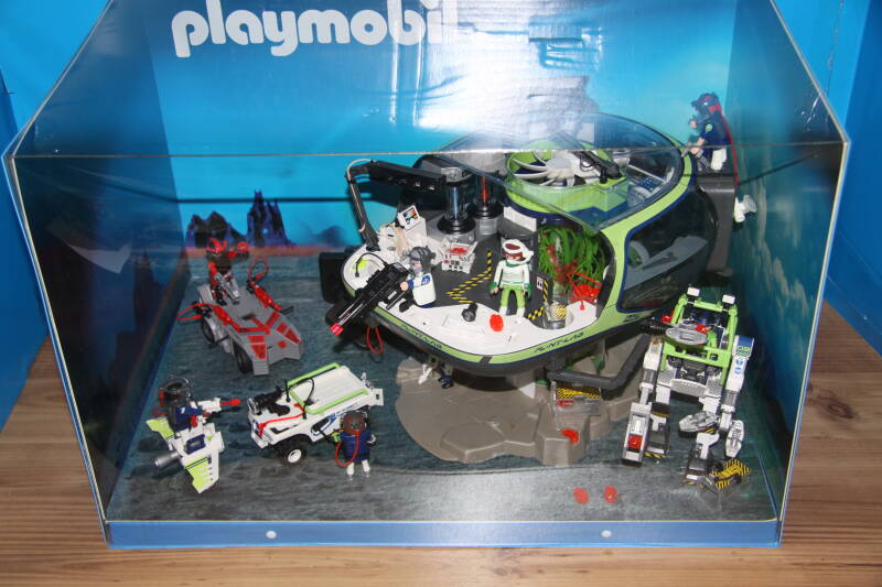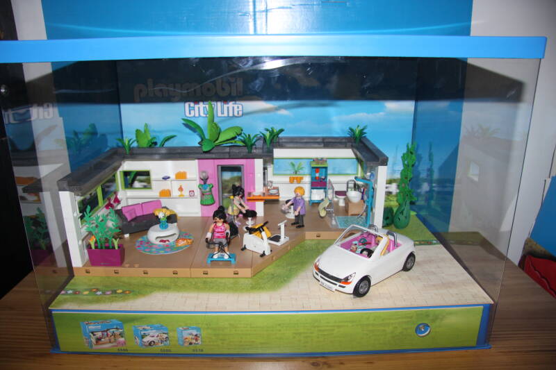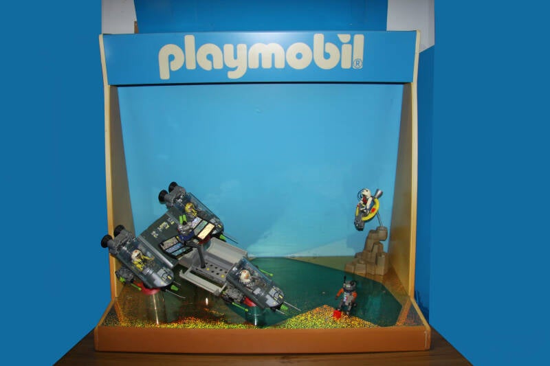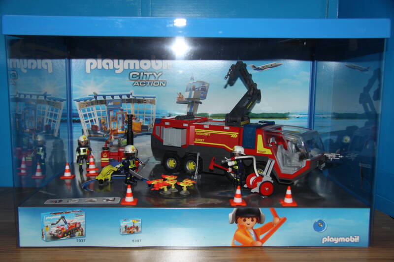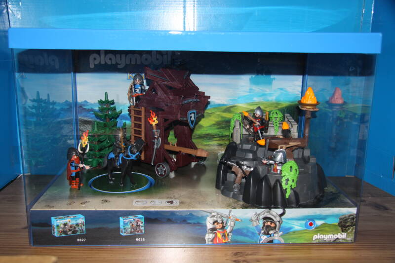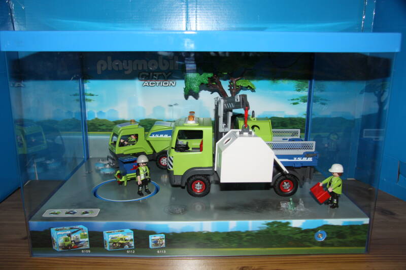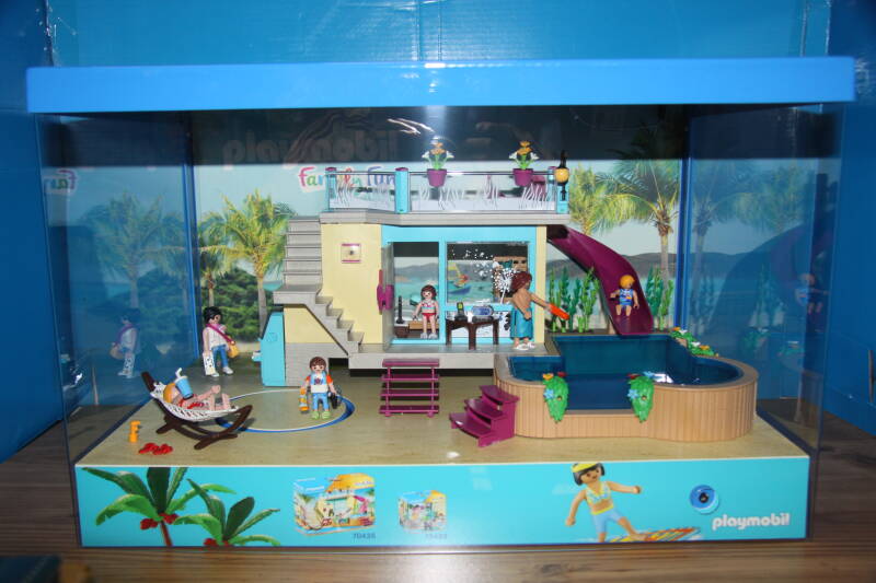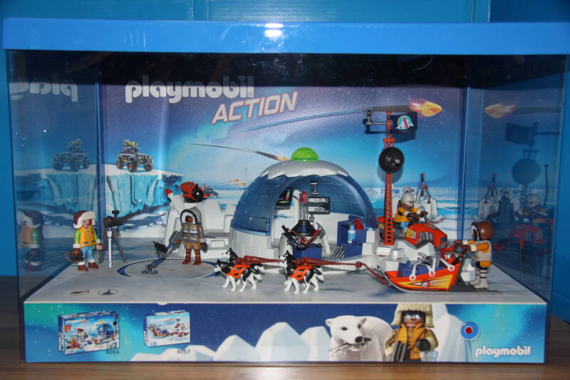 Ter bevordering van de verkoop zet Playmobil al sinds jaar en dag displays in de (grotere) winkels. Deze mini-diorama's zijn uitstallingen van de nieuwe serie(s) die zijn uitgebracht en beelden een tafereel uit die de fantasie van de kopers moet prikkelen. Het Playmobil in deze displays staat vastgelijmd en is ook niet bedoeld om mee te spelen, sterker nog: het is de bedoeling dat deze displays na afloop van de verkoopperiode weer geretourneerd worden naar de fabriek.