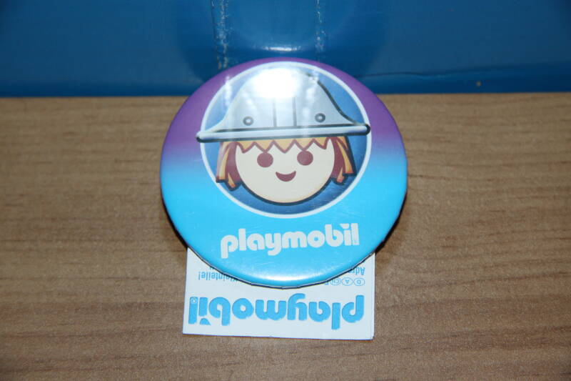 Buttons en speldjes ben ik nog niet veel tegengekomen, en de buttons die ik heb, komen dan ook allemaal uit hetzelfde jaar: 2005. Ooit gekregen van één van mijn Duitse vrienden (Rainer, Danke!) en sindsdien nooit meer iets bijgevonden. Hieronder staan ze alle tien. Tevens nog een speldjesblad kunnen bemachtigen van enige jaren eerder, waar ook nog niet-Playmobilspeldjes opzaten.