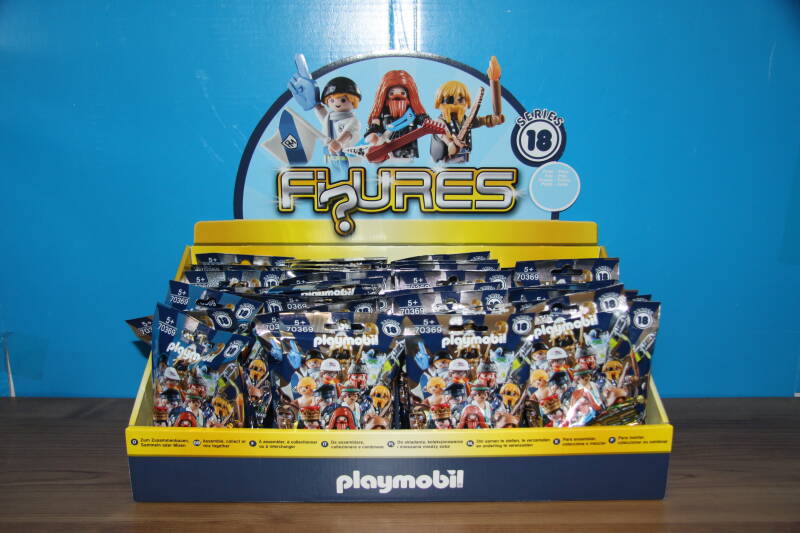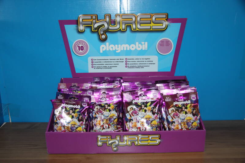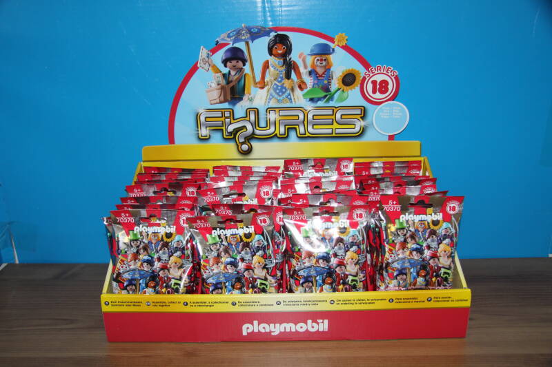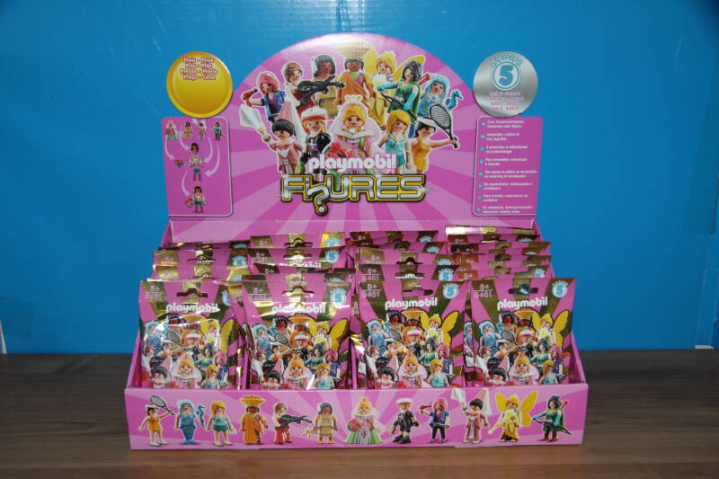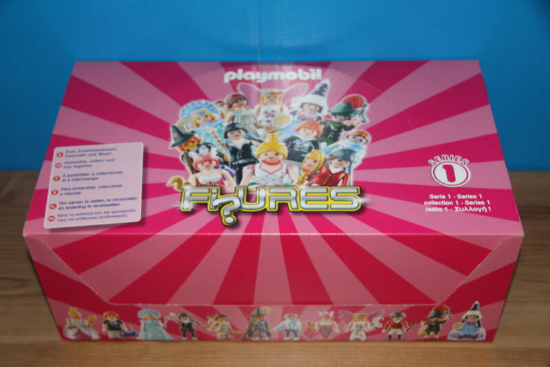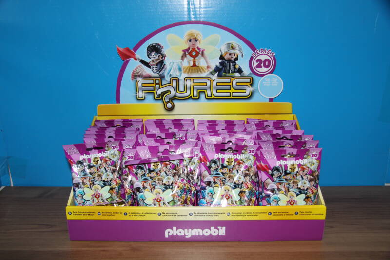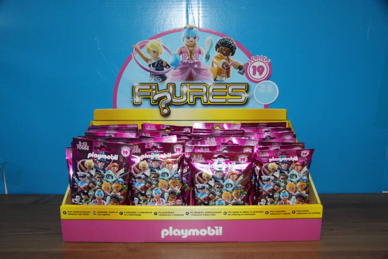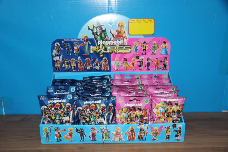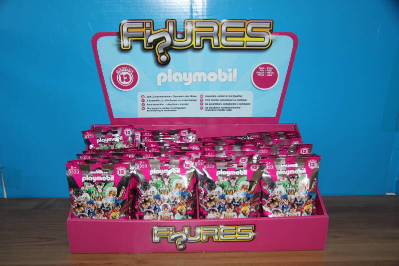 Hieronder de Fi?ures in hun verkoopdozen, dus nog volledig ingepakt. Zowel de jongens (boys) als meisjes (girls) zijn vertegenwoordigd in mijn collectie. Behoudens in het eerste jaar en in 2017, toen er maar één serie is uitgebracht, komen er elk jaar twee series op de markt, van zowel de boys als girls. Een andere noviteit is de verkoopdoos van de eerste serie: die is volledig dicht, daar waar vanaf serie 2 een kartonnen bord werd bijgevoegd.