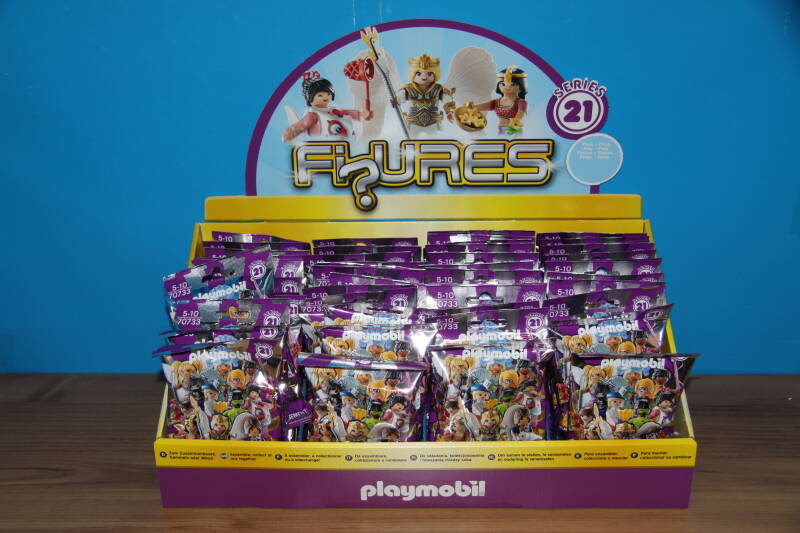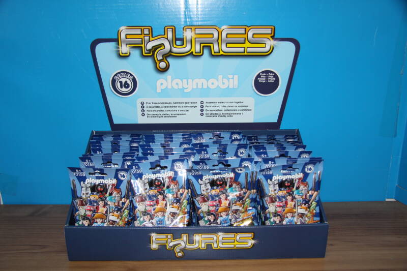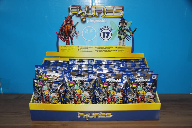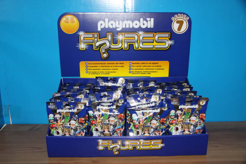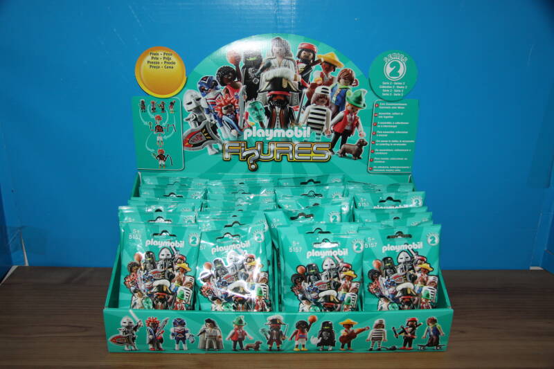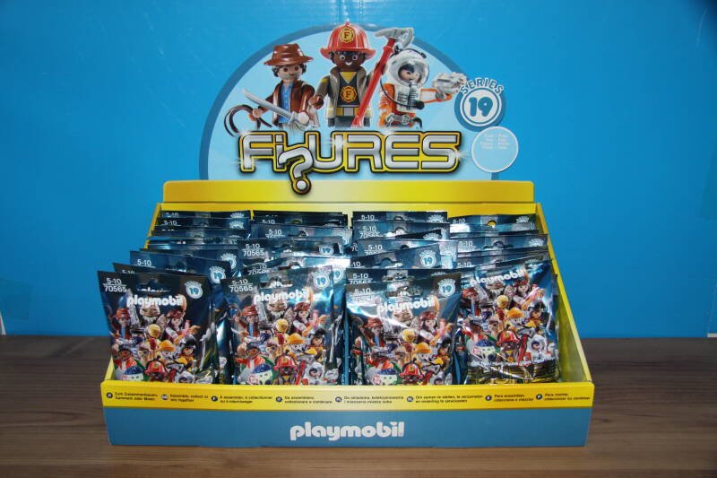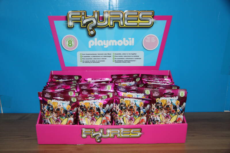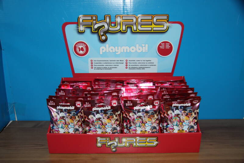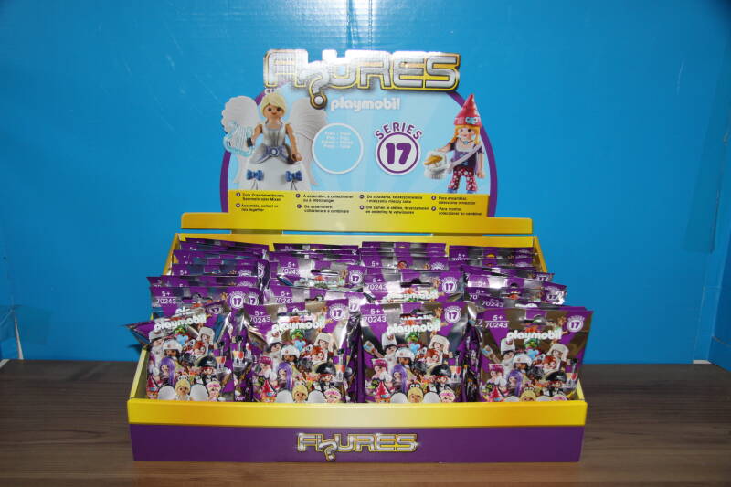 Hieronder de Fi?ures in hun verkoopdozen, dus nog volledig ingepakt. Zowel de jongens (boys) als meisjes (girls) zijn vertegenwoordigd in mijn collectie. Behoudens in het eerste jaar en in 2017, toen er maar één serie is uitgebracht, komen er elk jaar twee series op de markt, van zowel de boys als girls. Een andere noviteit is de verkoopdoos van de eerste serie: die is volledig dicht, daar waar vanaf serie 2 een kartonnen bord werd bijgevoegd.